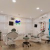 Không gian điều trị được thiết kế khoa học với 2 ghế nha hiện đại, bố trí cách nhau vừa đủ để đảm bảo sự riêng tư và thuận tiện cho bác sĩ thao tác. Tường được sơn màu sáng và ốp vật liệu chống bám bụi, giúp dễ dàng vệ sinh và đảm bảo tiêu chuẩn vô trùng.