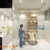 Phòng khám sử dụng tông màu trắng kem sáng, kết hợp với vật liệu đá marble vân mây tạo cảm giác sang trọng nhưng vẫn gần gũi, sạch sẽ. Những mảng tường ốp đá cùng hệ thống trần phẳng kết hợp đèn LED âm trần mang đến ánh sáng dịu mắt, đồng đều toàn không gian.