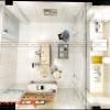 Sàn nhà lát gạch men trắng bóng, chống trơn trượt, đảm bảo an toàn và vệ sinh. Trần nhà thiết kế phẳng, có viền tạo chiều sâu, hệ thống đèn bố trí đều theo trục ánh sáng. Hệ tủ kệ dùng chất liệu gỗ công nghiệp phủ veneer cao cấp, phối hợp với inox và kính để giữ vẻ hiện đại và bền đẹp.
