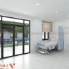 Toàn bộ không gian quanh giường khám đều được giữ màu sáng, đảm bảo vệ sinh và dễ dàng lau chùi. Các chi tiết nội thất sử dụng vật liệu gỗ công nghiệp phủ melamine hoặc inox chống gỉ, phù hợp môi trường phòng khám.
