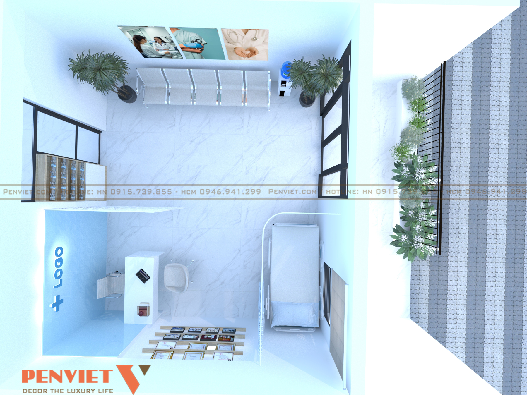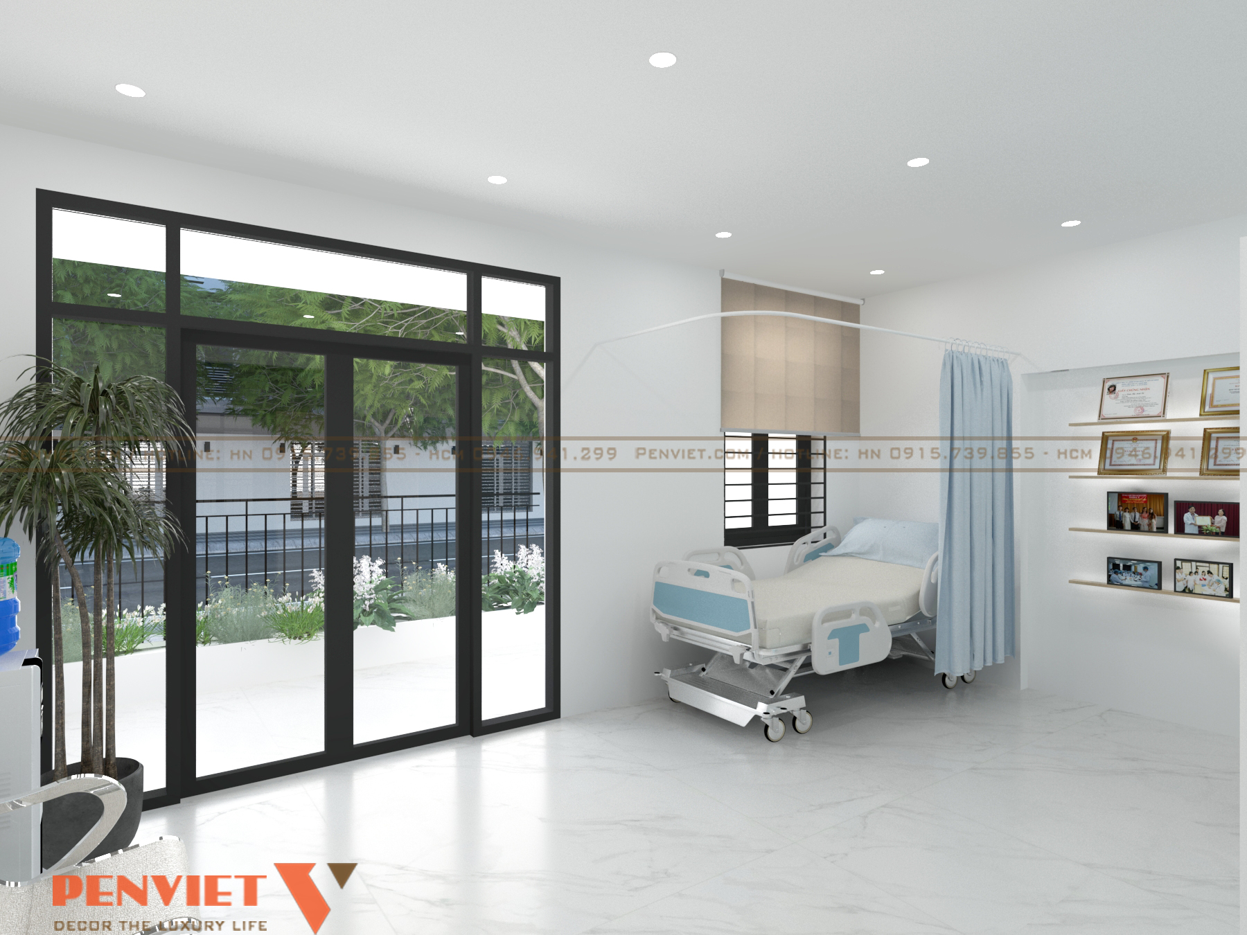 Phòng khám được thiết kế theo phong cách hiện đại, diện tích vừa phải nhưng cách bố trí khoa học giúp tận dụng tối đa diện tích sử dụng. Không gian được chia tách rõ ràng giữa khu vực tiếp đón, khu vực làm việc của bác sĩ và giường bệnh, đảm bảo riêng tư nhưng vẫn thông thoáng.