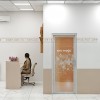 Ngoài ra, bên dưới bảng hiệu chính là dòng chữ nổi bật in màu vàng kim mô tả địa chỉ cụ thể của phòng khám. Tất cả đều được thể hiện bằng phông chữ rõ nét, dễ đọc, tạo sự tin tưởng cho bệnh nhân ngay từ cái nhìn đầu tiên.