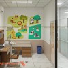Bên cạnh đó là hệ thống ghế ngồi cho phụ huynh trông trẻ bọc da công nghiệp với các màu xanh, vàng, cam tươi vui. Trên tường được trang trí hình ảnh động vật ngộ nghĩnh như hươu cao cổ, gấu, thỏ… giúp các bé cảm thấy vui vẻ, quên đi cảm giác sợ hãi khi đến phòng khám.
