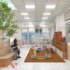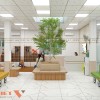 Sảnh giữa là nơi tiếp nhận, phân luồng và định hướng bệnh nhân. Ở giữa sảnh có bố trí một cụm cây xanh tạo điểm nhấn thư giãn thị giác, mang lại không khí trong lành và cảm giác thân thiện.