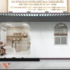 Ở phía cuối mặt bằng là khu bếp ăn và phòng nghỉ cho nhân viên, tách biệt hẳn khu vực khám chữa bệnh. Không gian này được thiết kế theo phong cách tối giản với bàn ăn nhỏ, bếp từ, máy hút mùi và tủ lạnh. Đây là nơi nhân viên có thể nghỉ ngơi, ăn uống trong giờ nghỉ ca, giúp nâng cao hiệu suất làm việc.