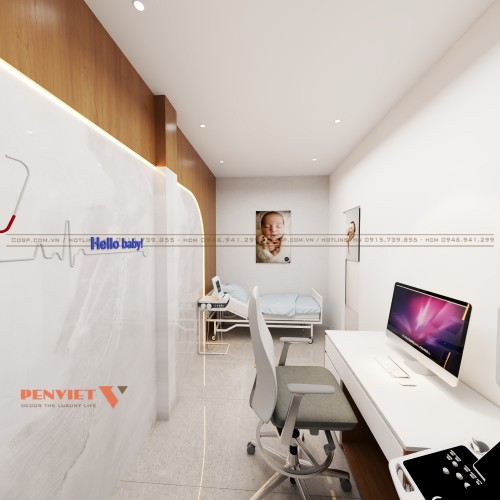 Thiết kế phòng khám sản bác sĩ Trang đáp ứng yêu cầu công năng và đặc biệt quan tâm đến trải nghiệm của bệnh nhân. Cách setup hiện đại, tinh tế kết hợp với không gian mở, ánh sáng hài hòa tạo nên không gian y tế đẳng cấp. Bệnh nhân đến thăm khám sẽ cảm nhận được sự chăm sóc tận tình, tin tưởng và an tâm tuyệt đối. Hãy liên hệ PenViet nếu quý khách có nhu cầu thiết kế không gian khám chữa bệnh chuyên nghiệp.