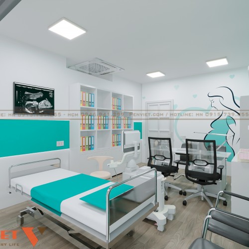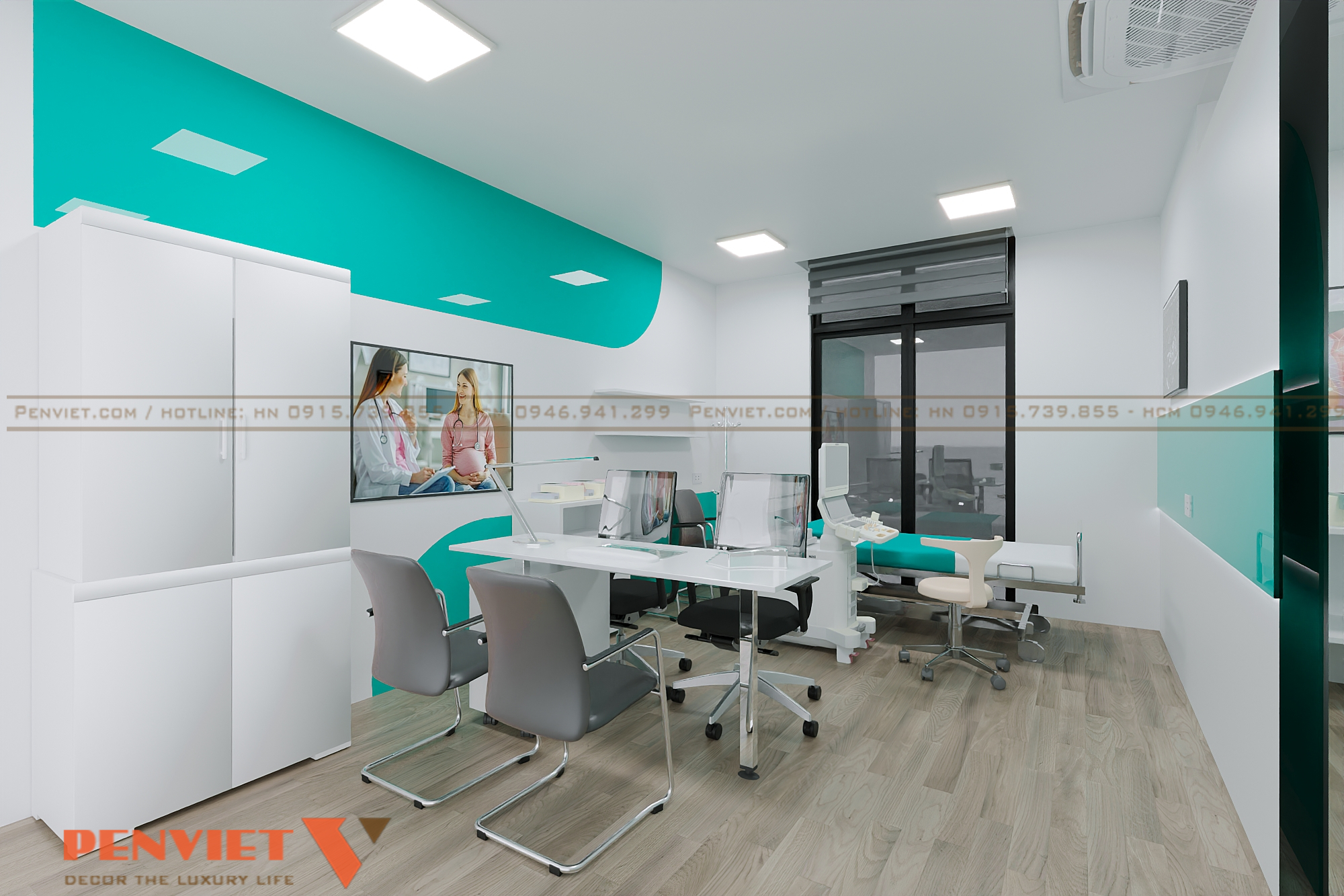 Mỗi phòng khám đều được thiết kế tách biệt bằng vách kính mờ, vừa giúp không gian thoáng hơn, vừa đảm bảo tính kín đáo cần thiết trong lĩnh vực sản phụ khoa.
