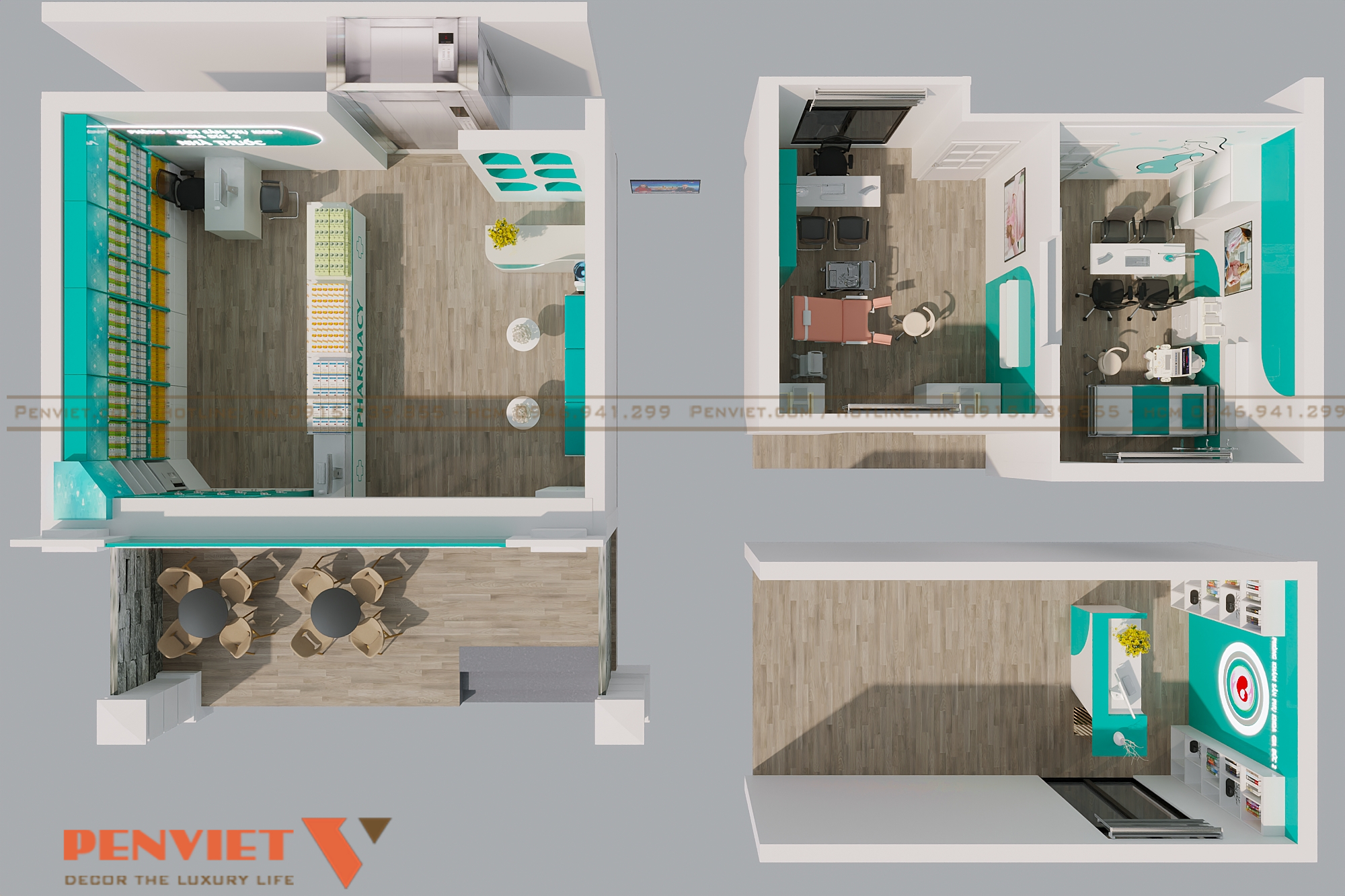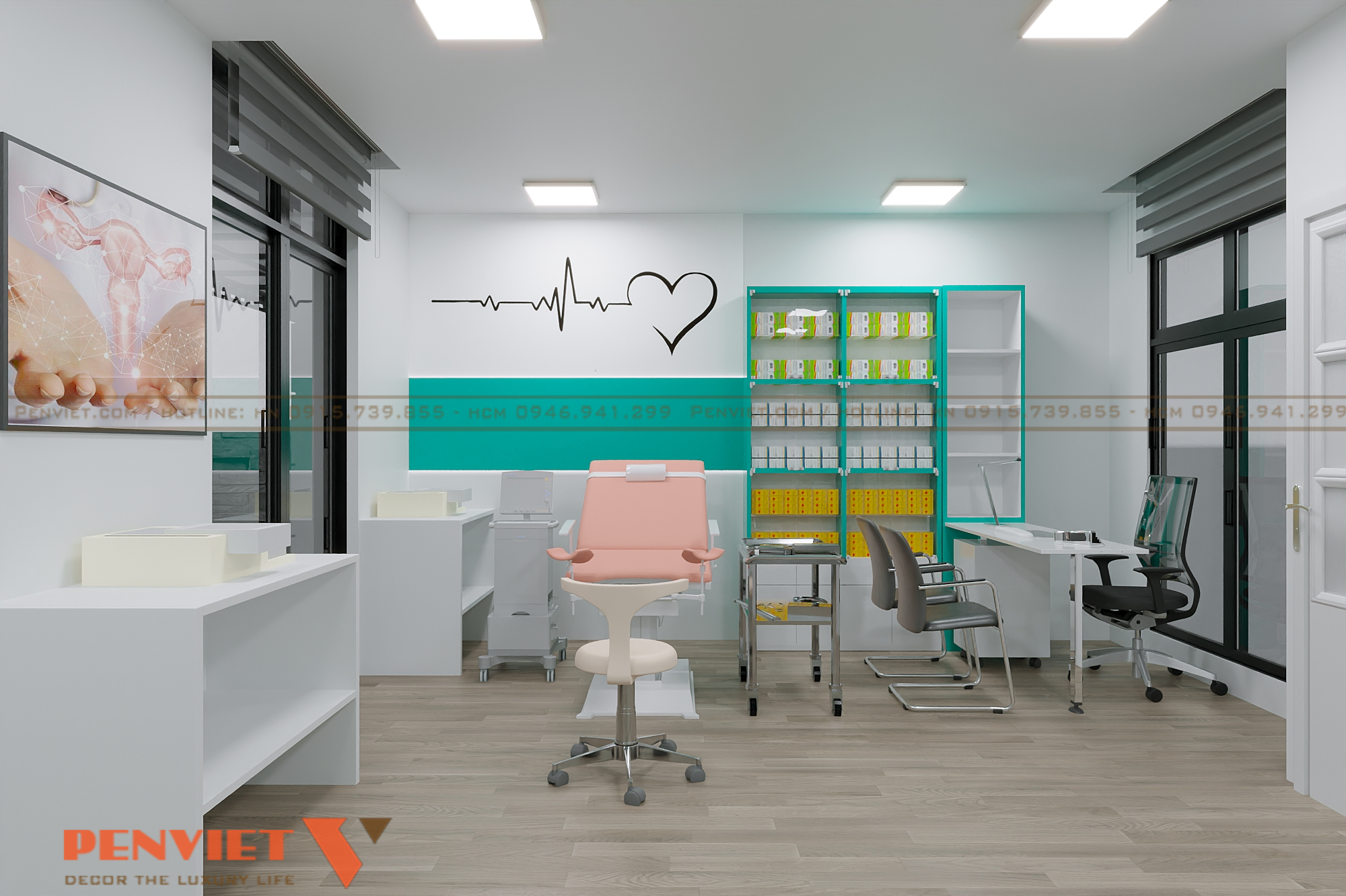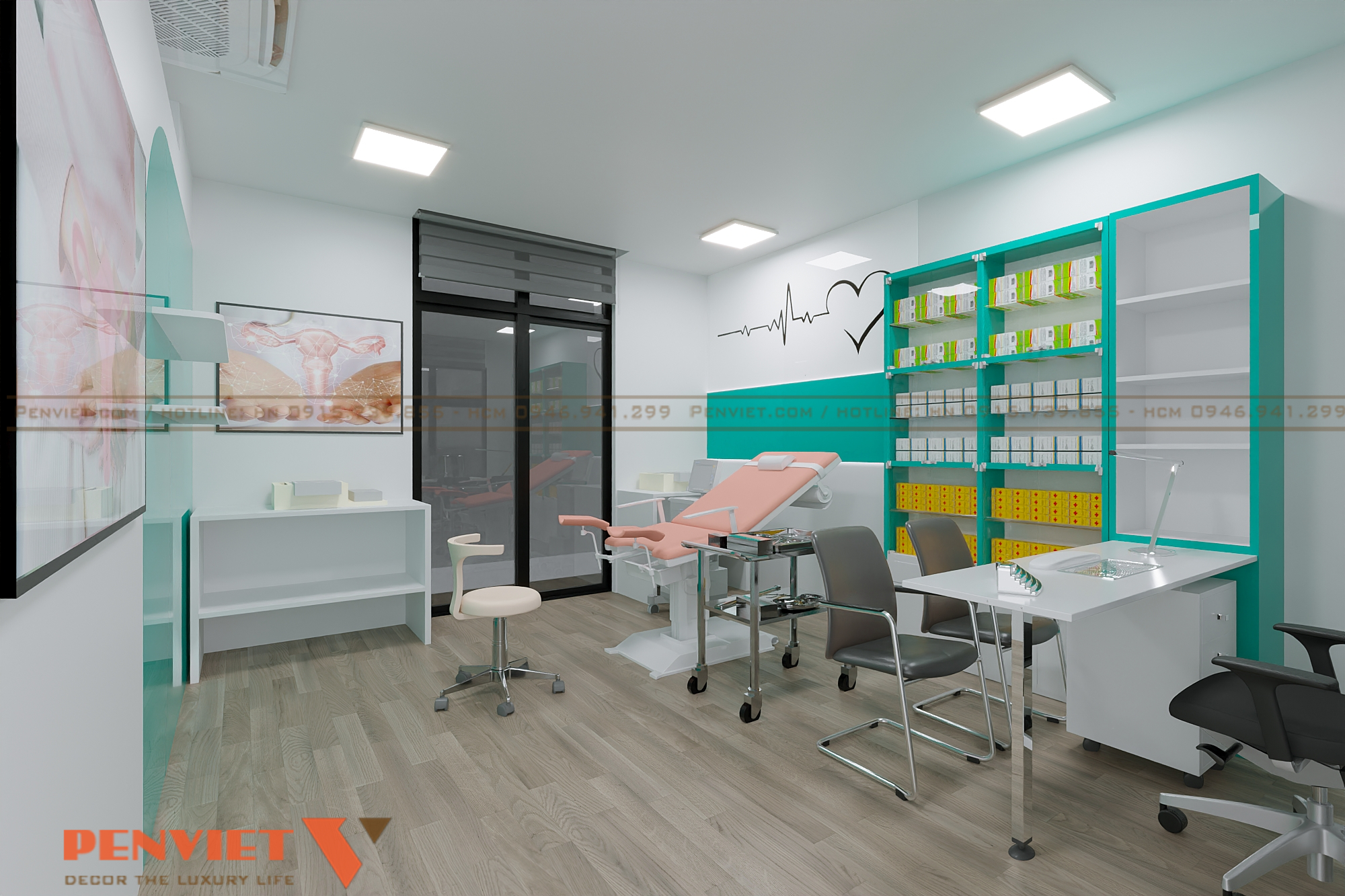 Cách bố trí này không chỉ mang lại hiệu quả sử dụng tối đa trên diện tích nhỏ, mà còn đảm bảo tuân thủ các tiêu chuẩn thiết kế phòng khám chuyên khoa theo quy định y tế hiện hành.