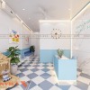 Bước vào bên trong, khu vực lễ tân chính là điểm nhấn đầu tiên về mặt nội thất. Thiết kế không gian sử dụng hai tông màu chủ đạo là trắng và xanh dương nhạt, mang lại cảm giác sạch sẽ, tươi sáng và thư giãn.