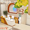 Ngay khi bước vào trung tâm, khách hàng sẽ tiếp cận quầy lễ tân. Đây là điểm nhấn quan trọng, được thiết kế với tông trắng và cam chủ đạo. Kiểu dáng bo cong mềm mại kết hợp cùng hệ thống đèn chiếu sáng tạo nên sự thân thiện và hiện đại.