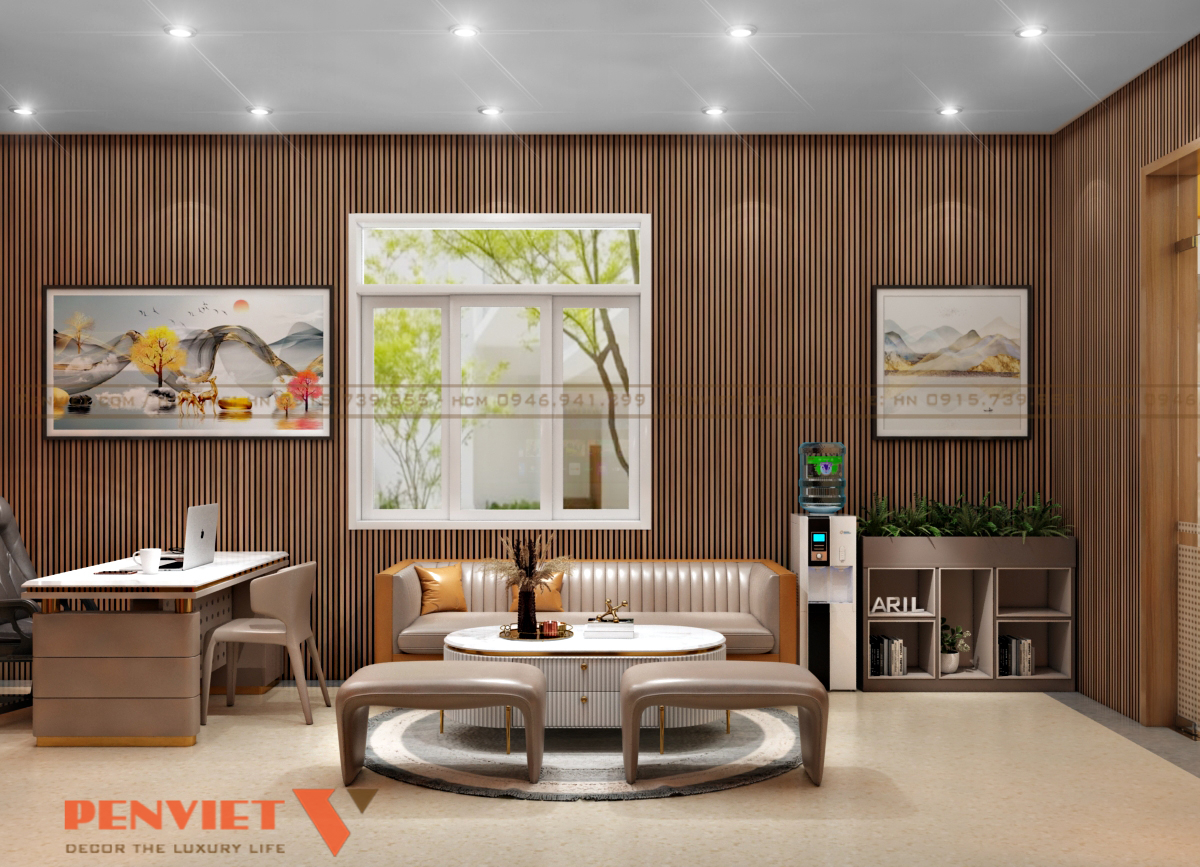 Phòng giám đốc: Không gian làm việc và tiếp khách riêng biệt, thể hiện sự chuyên nghiệp.