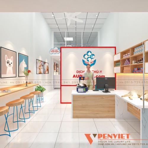 Việc lựa chọn vật liệu đã được chúng tôi tư vấn cho chủ đầu tư sao cho phù hợp với điều kiện môi trường và công năng sử dụng nhằm đảm bảo độ bền và tính thẩm mỹ của nội thất. Chính điều này đã khiến chủ đầu tư càng thêm tin tưởng về quyết định hợp tác cùng PenViet trỏng dự án thiết kế phòng khám thú y của mình.