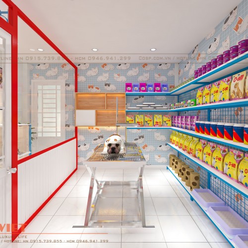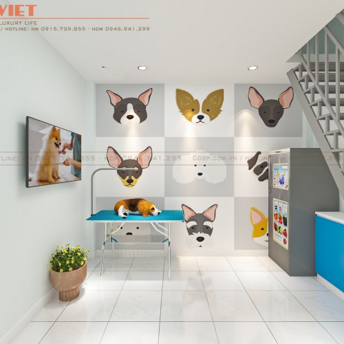 Mẫu thiết kế phòng khám thú cưng này có cách phân chia không gian và bố trí mặt bằng khoa học nhằm đảm bảo được đầy đủ các khu vực chức năng theo yêu cầu từ chủ đầu tư cũng như giữ được sự thông thoáng cho cửa tiệm.