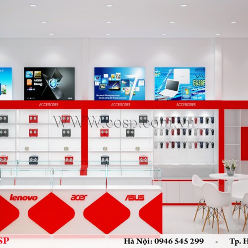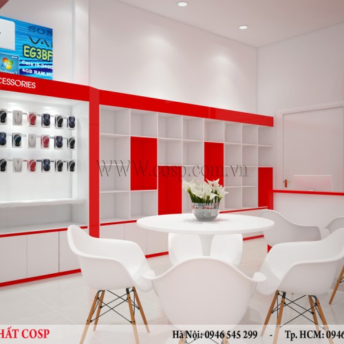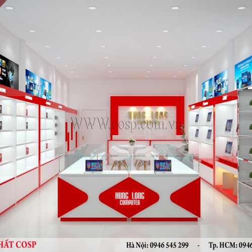 Muốn có được sự chú ý của khách hàng đòi hỏi cửa hàng điện thoại phải có một phong cách thiết kế nào đó. Dù là gì, dù diện tích có nhỏ hay lớn hoặc dù kinh phí như thế nào thì Nội thất Cosp cũng có thể đáp ứng được. Nổi tiếng là một đơn vị thiết kế và thi công nội thất chuyên nghiệp nên chúng tôi tự tin tạo ra những sản phẩm đẹp nhất. Sau đây mời các bạn tham khảo mẫu thiết kế cửa hàng máy tính anh Hùng- Đăk Nông