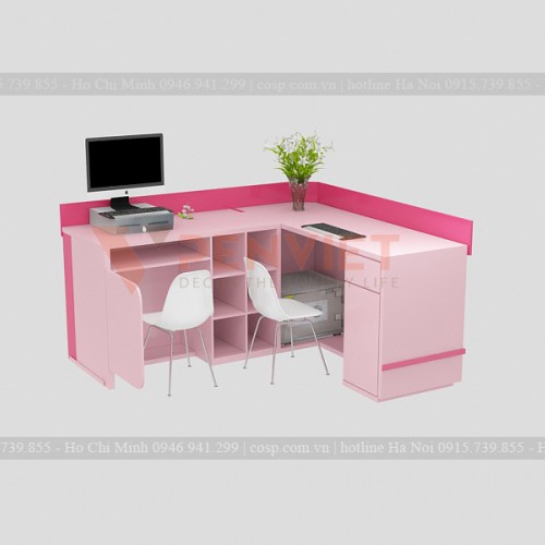 Gỗ MDF cao cấp kết hợp với sắt sơn tĩnh điện hai màu xanh - hồng