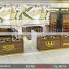 Ngoài ra, với cách bố trí hai dãy tủ kính xếp thành 2 chữ U đối xứng nhau, khách hàng có thể dễ dàng và thuận tiện trong việc di chuyển, quan sát sản phẩm từ bên trong lẫn bên ngoài gian hàng. Đây là một điểm cộng lớn khi mà diện tích của gian hàng khá khiêm tốn.