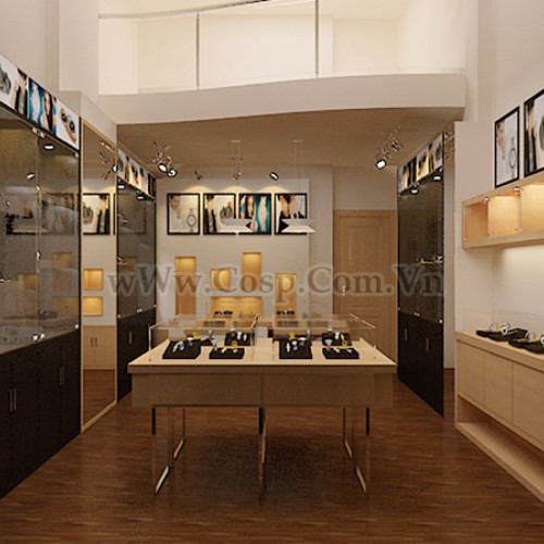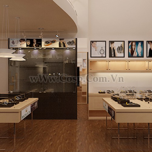 Với nhu cầu kinh doanh là các mặt hàng đồng hồ cao cấp xa xỉ, Nội thất Cosp (Penviet) đã tư vấn, định hình phong cách thiết kế, sử dụng màu sắc và vật liệu tới khách hàng một cách chi tiết. Chúng tôi sử dụng 2 tone màu nâu và đen sang trọng, huyền bí, giúp nâng tầm phong cách của shop đồng hồ 18+.