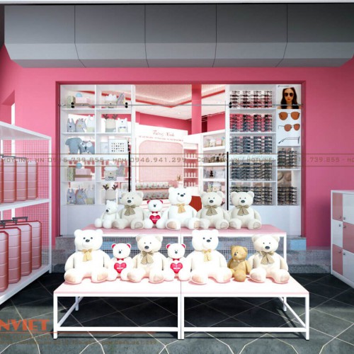 Khách hàng mục tiêu của các shop mỹ phẩm, phụ kiện phần lớn là chị em phụ nữ. Việc lựa chọn màu hồng, trắng sẽ làm nổi bật các sản phẩm mặt hàng được trưng bày. Từ đó góp phần xây dựng, quảng bá thương hiệu và thu hút khách hàng tiềm năng.