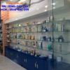 Về nội thất thì showroom mỹ phẩm nhỏ này có cách sắp xếp nội thất khá thông minh. Điểm mạnh ở đây là hệ kệ trưng bày sát tường rất gọn gàng. Chúng được tạo nên từ gỗ MDF cốt xanh chống ẩm phủ Melamine, các đợt bằng kính cường lực thật sự sang. Bên dưới có tủ, bản lề giảm chấn và có khóa đầy đủ.