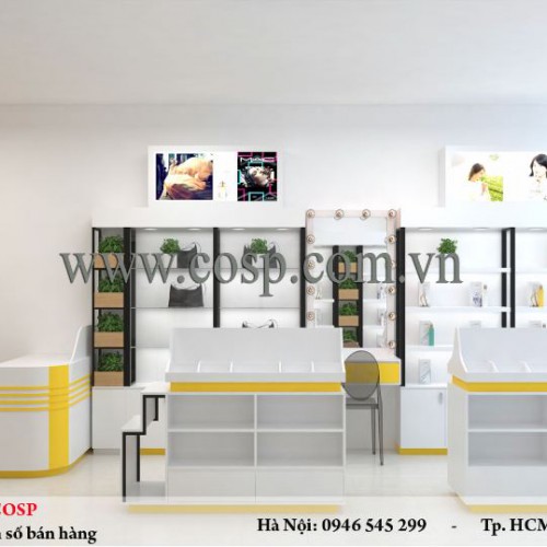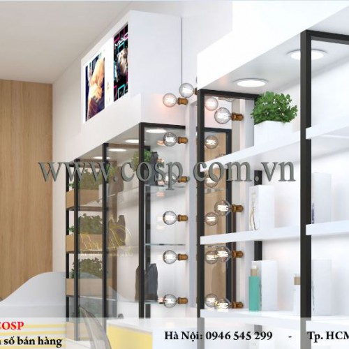 Ngay khi nhận được yêu cầu thiet ke shop my pham này. Đội ngũ nhân viên của COSP đã nhanh chóng hoàn thiện và thi công đảm bảo tốt thời gian khai trương của cửa hàng. Đúng với bảng báo giá thiết kế, đúng như mong muốn, yêu cầu về công năng cũng như tính thẩm mỹ của cửa hàng mỹ phẩm chị Hằng.