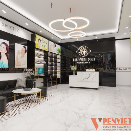 Thiết kế cửa hàng mỹ phẩm Huyền Phi Cosmetic tại Cầu Giấy, Hà Nội là một dự án do Penviet thực hiện với phong cách thiết kế hiện đại sang trọng. Chị Huyền - chủ đầu tư của dự án tìm đến Penviet với mong muốn tận dụng không gian tầng 1 trong ngôi nhà của mình để mở cửa hàng mỹ phẩm cùng thiết kế bắt mắt. Vậy phương án mà chúng tôi đưa ra cho chủ đầu tư là gì? Hãy cùng theo dõi mẫu thiết kế đầy ấn tượng này ngay sau đây nhé.