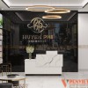 Bên cạnh đó, phần địa chỉ và hotline cũng được thiết kế cách điệu với vật liệu mica phát sáng mặt, giúp khách hàng dễ dàng ghi nhớ và nhận biết.