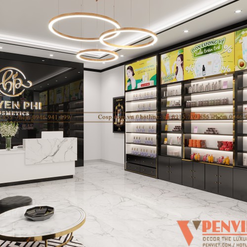 Bài viết trên đây vừa giới thiệu tới khách hàng mẫu thiết kế cửa hàng mỹ phẩm Huyền Phi Cosmetic do Nội thất Penviet thực hiện tại Cầu Giấy, Hà Nội. Nếu bạn cũng đang có dự định kinh doanh shop mỹ phẩm nhưng chưa tìm được phương án phù hợp với không gian cửa hàng của mình, hãy liên hệ ngay với Penviet để chuyên viên của chúng tôi tư vấn và báo giá chi tiết nhé!