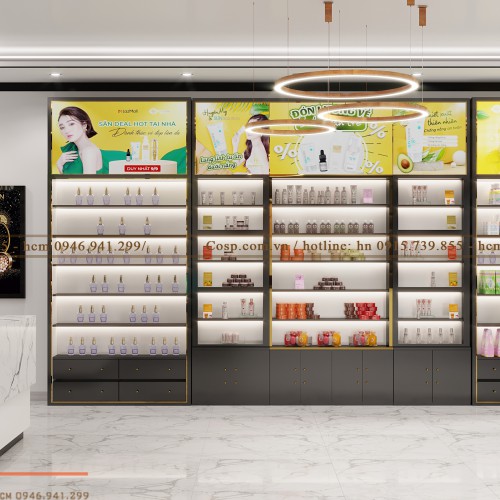 Hệ thống tủ trưng bày mỹ phẩm nổi bật