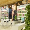 Các kiến trúc sư đã bày trí những chậu cây lớn nhỏ đặt vào từng vị trí thích hợp. Là người đi theo tín ngưỡng tâm linh, chị Lê đã chia sẻ việc trang hoàng cửa hàng bằng xanh để mang may mắn và tài lộc cho người làm ăn. Thêm vào đó các tấm tranh backlit chủ đề mỹ phẩm được ứng dụng trang trí cũng được các kiến trúc sư dùng cho cửa hàng chị Lê.