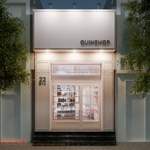 Thiết kế mặt tiền cửa hàng mỹ phẩm Quinshop