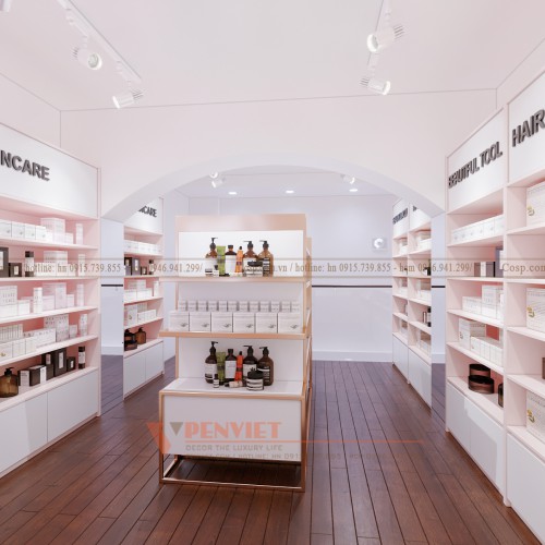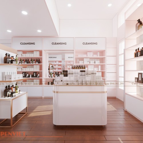 Mẫu thiết kế shop mỹ phẩm được anh Thắng đứng lên đảm nhiệm cùng kts Quân mai của Nội Thất Cosp. Với diện tích là 40m2 chúng tôi thiết kế shop một cách khoa học, mang những kiến thức chuyên sâu cùng với chất liệu sản phẩm hiện đại vào trong thiết kế nội thất.