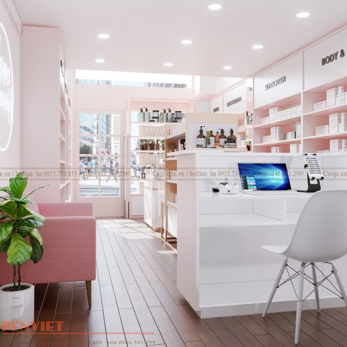 Tiết trời tháng 12 giá lạnh cũng là lúc anh Thắng tìm đến Nội Thất Cosp để hợp tác trong dự án thiết kế cửa hàng mỹ phẩm QuinShop. Với sắc hồng là gam màu chính, mặt bằng cửa hàng là 40m2 thì chúng tôi đã có một phương án thiết kế riêng cho cửa hàng mỹ phẩm này. Hãy cùng chúng tôi tham khảo một vài hình ảnh thiết kế shop đẹp và những nhận xét khách quan nhé.
