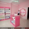 Hệ thống tủ trưng bày bằng gỗ sử dụng trong thiết kế cửa hàng này được làm bằng chất liệu gỗ mdf phun sơn 07 vừa có khả năng chống ẩm, cong vênh. Loại vật liệu này có giá thành phù hợp lại vừa làm tăng tính thẩm mỹ cho toàn bộ không gian shop. Ngoài ra, hệ thống tủ trưng bày sản phẩm còn sử dụng kính thường 8mm, các sản phẩm mỹ phẩm được trưng bày trong tủ kính dễ dàng thu hút khách hàng hơn.