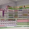 Kệ trưng bày trong cửa hàng làm bằng gỗ MDF phun sơn PU cao cấp giúp sản phẩm có độ bóng tạo màu sắc đẹp cho sản phẩm. Kệ được chia làm nhiều tầng, các đợt to ngăn cách. Kính được bao quanh giúp cho những mỹ phẩm sang trọng và cao cấp hơn.