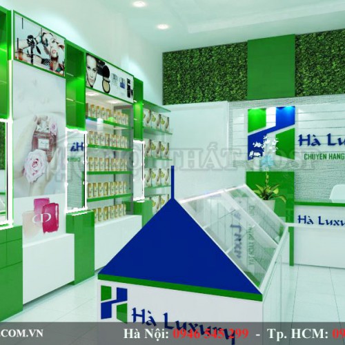 Thiết kế nội thất cửa hàng mỹ phẩm, làm đẹp Hà Luxury tại Hà Nội với không gian hiện đại, tiện nghi đem lại địa chỉ tin cậy để các bạn làm đẹp và mua sản phẩm chính hãng yêu thích của mình.