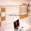 Các tủ kệ trong shop sử dụng chất liệu gỗ MDF với nhiều ưu điểm như bền, nhẹ, chống cong vênh mối mọt đem tới chất lượng sản phẩm cao.