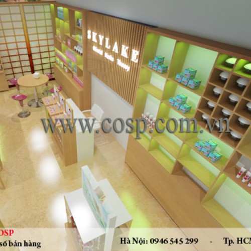 Nắm lấy cơ hội là thị trường Việt Nam đang nổ ra một loạt những mỹ phẩm nhái, mỹ phẩm giả. Chị Lan đã liên hệ đến nội thất Cosp để thiết kế shop mỹ phẩm chị Lan tuyệt đẹp. Đặc biệt là nó tạo được sự chuyên nghiệp và tin tưởng cho khách hàng. Hãy xem một số hình ảnh và nhận xét cơ bản nhé.