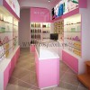 Thiết kế nội thất cửa hàng mỹ phẩm lấy ý tưởng từ màu hồng tượng trưng cho sắc đẹp, sự lãng mạn kết hợp với màu trắng là màu của sự trong sáng, thanh khiết tạo nên một không gian vừa lãng mạn, trẻ trung, tươi sáng.