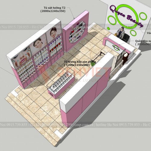 Thiết kế nội thất cửa hàng mỹ phẩm Quyên Beauty