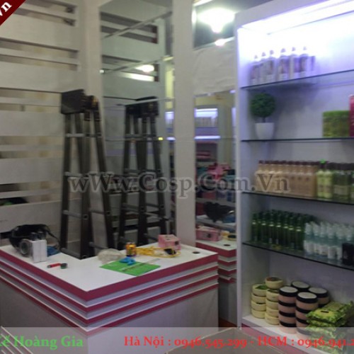 Thiết kế cửa hàng mỹ phẩm với sự logic trong sắp xếp nội thất, hợp lý về ánh sáng và đẹp đẽ về nội thất. Các kiến trúc sư và thợ thi công shop mỹ phẩm đã không làm chủ đầu tư thất vòng. Dự án được thi công nhanh chóng chỉ với 1 tuần nên khách hàng rất ưng ý và muốn tiếp tục với nội thất Cosp ở lần tiếp theo.
