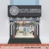 Nổi bật nhất có lẽ là thiết kế bảng hiệu shop mang logo và thương hiệu Natura Siberica khiên tốn với màu chữ trắng. Những nét bình dị, mộc mạc đó đem đến cảm giác gần gũi, đơn sơ.