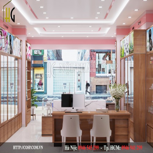 Thiết kế cửa hàng mỹ phẩm với tone màu hồng xinh xắn