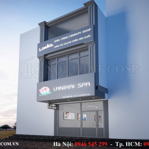 Qua bản vẽ 3D, shop mỹ phẩm LANIKAI đã hiện lên với biết bao ấn tượng như mong đợi của chủ đầu tư. Đó là cả một quá trình sáng tạo của nhà thiết kế NỘI THẤT COSP. Thương hiệu cửa hàng đã được thể hiện rất rõ ngay mặt tiền của shop mỹ phẩm.