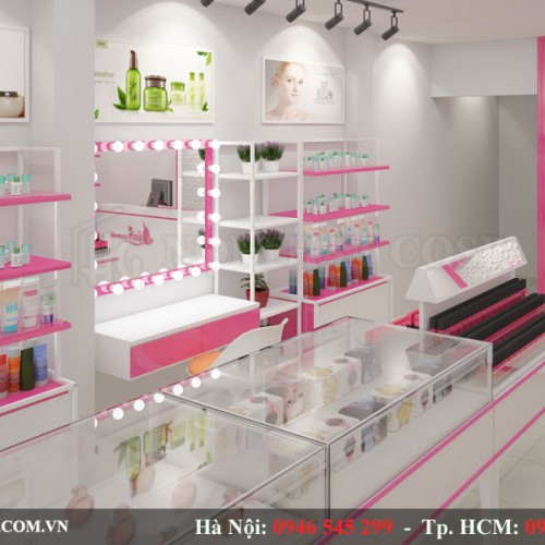 Đồng thời, phần tủ này giúp phô diễn toàn bộ vẻ đẹp, sự cao cấp và sang trọng của các sản phẩm mỹ phẩm của shop.