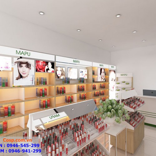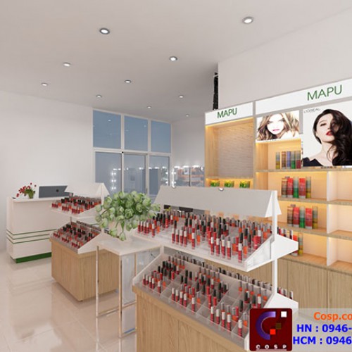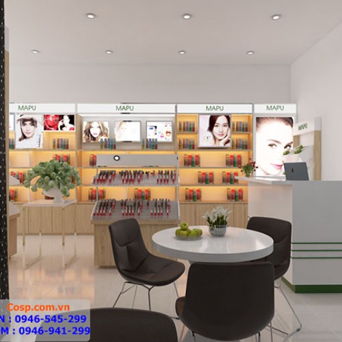 MAPU là shop mỹ phẩm cao cấp ở thành phố Vũng Tàu, theo yêu cầu của chị Linh, các chuyên gia đã đưa ra mẫu thiết kế shop mỹ phẩm MAPU theo phong cách hiện đại, sang trọng nhưng vẫn tự nhiên, mềm mại.