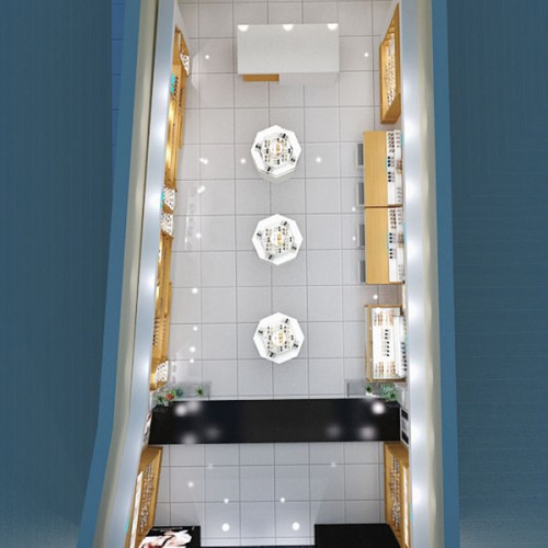 3 kệ giữa nhà được đặt ngay ngắn, kệ được thiết kế theo hình bát giác lạ mắt. Màu trắng giúp cửa hàng trông rộng rãi hơn, thoáng đãng hơn. Tạo ra không gian thoải mái cho mọi khách hàng tới xem và mua sắm.