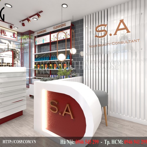 - Tên dự án: Thiết kế nội thất shop mỹ phẩm S.A