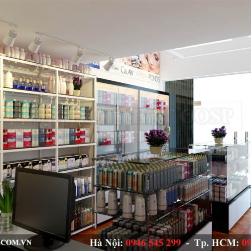 Vì thế mà lượng sản phẩm trưng bày được đảm bảo, và không gian đi lại từ đó cũng có phần được thêm phần rộng rãi. Tạo cho khách hàng một cảm giác thoải mái khi mua sắm khi vào showroom mỹ phẩm.