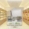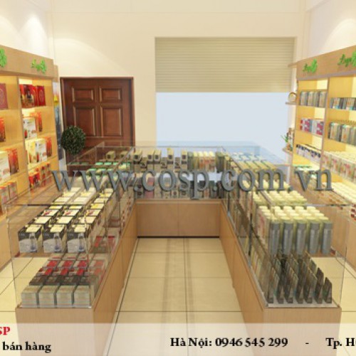 Hệ thống tủ trưng bày trong cửa hàng được bố trí hợp lý để giúp mãu thiet ke shop my pham thật thông thoáng, thoải mái giúp không khí lưu thông tốt trong cửa hàng rất tốt cho phong thủy.