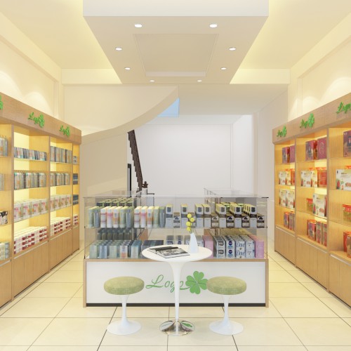 Thiết kế shop mỹ phẩm đẹp mang nét giản dị nhưng trang nhã nhờ cách sử dụng màu sắc nội thất tinh tế. Màu nâu nhạt với họa tiết vân gỗ đẹp mắt, trang nhã dem tới nét sang trọng, lịch lãm. Tông màu sáng còn có tác dụng khiến không gian cửa hàng được mở rộng có cảm giác rộng rãi và thông thoáng hơn.